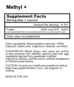Methyl + contains Quatrefolic (6S)-5-methyltetrahydrofolic acid, glucosamine salt), the most biologically active form of the B vitamin, folic acid.